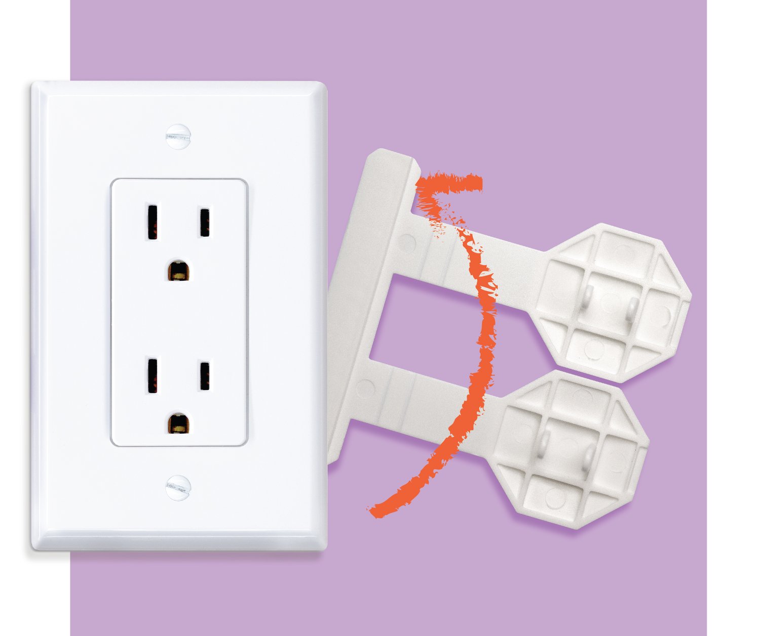 SocketSitter™ slides behind your outlet cover so the safety plugs are always attached, never lost and never a choking hazard. Made of high-quality durable plastic that is 100% free of BPA, phthalates and lead.